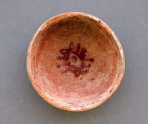 Small carinated (and simple) cups like these are one of the most distinctive pottery shapes for southeast Arabia Iron Age, and peculiarly for Early Iron Age. Together with a number of spouted bowl (also in the picture), spouted jars and storage jars fragments, they were discovered buried inside one of the mudbrick walls compartments, which constitutes the inner structure of the great wall that encircles the site.
